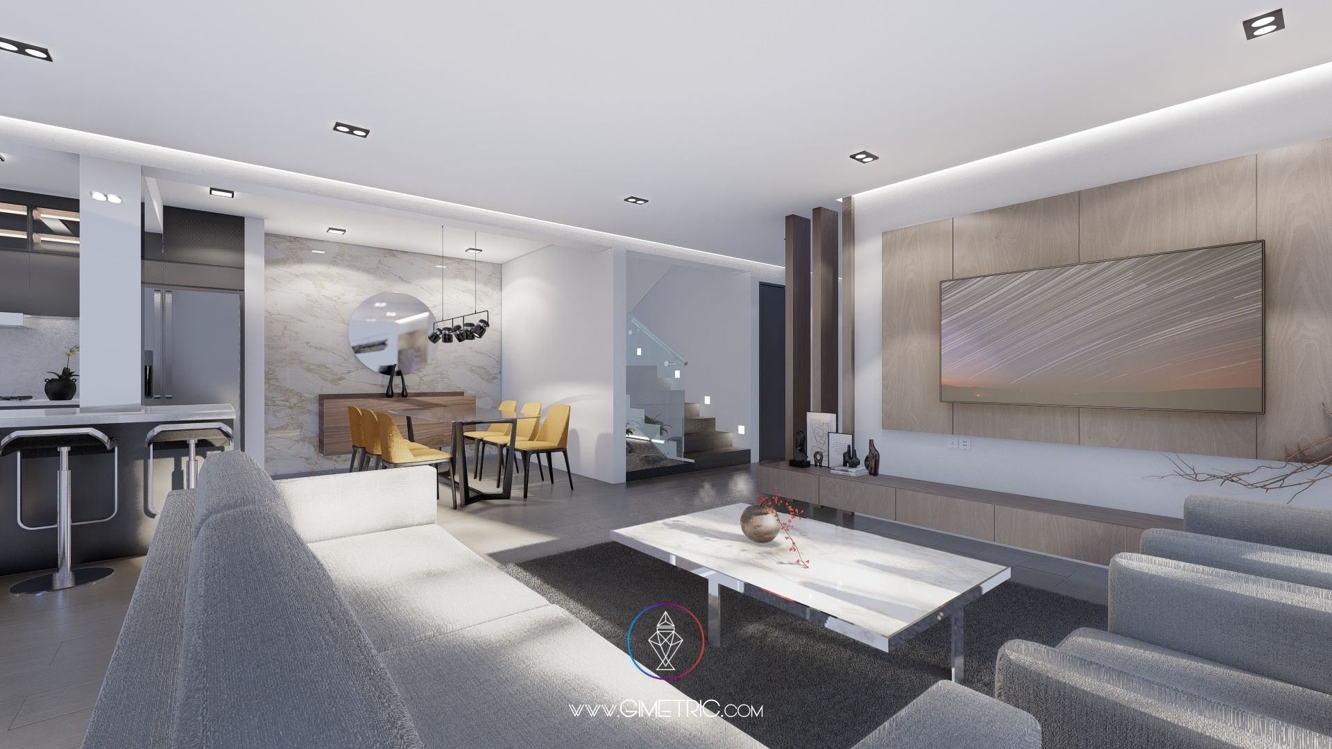 El interiorismo de Casa Ocampo se logró fusionando los materiales cálidos del estilo moderno, elementos simples para ganar espacio visual, todo esto fusionado con nuestro estilo logrando así espacios relajantes, elegantes y sofisticados con toques únicos por medio de texturas y una paleta de colores neutra pero con pops de color para dar vida y protagonismo.