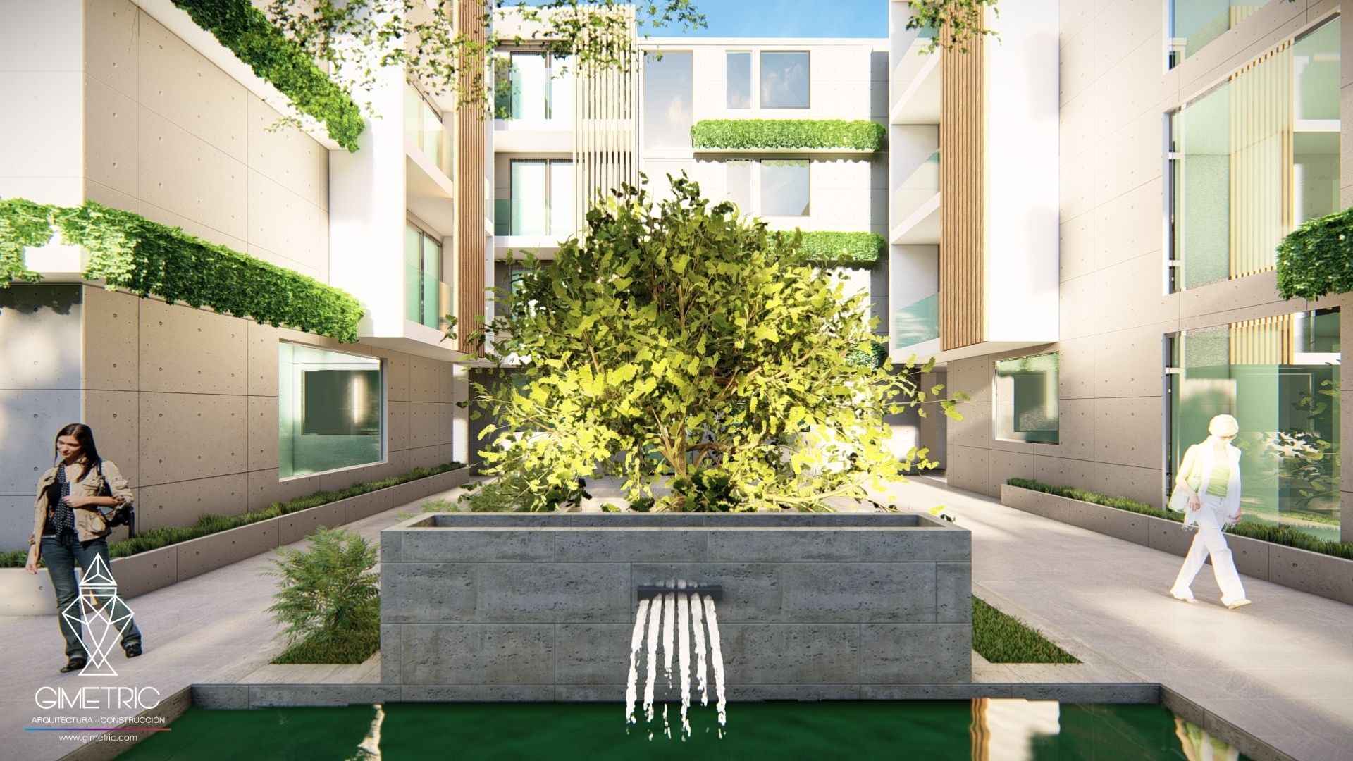 Diseño biofílico para Coliving incroporando elementos de la naturaleza en espacios urbanos e interiores evocando a la naturaleza con el objetivo de ayudar a que el usuario se sienta mejor y conecte nuevamente con el espacio.