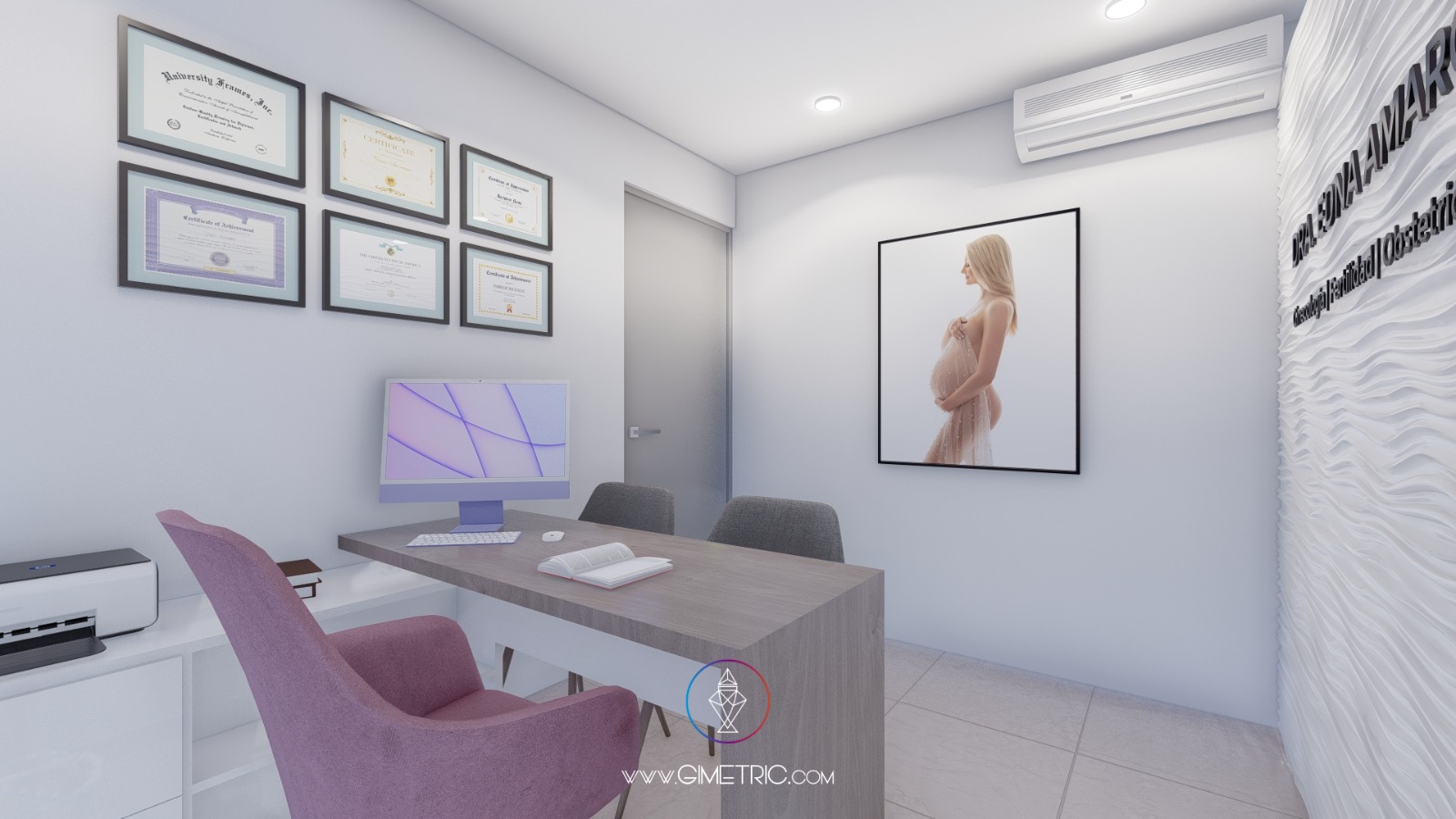 Diseñamos este consultorio inspirándonos en una paleta de colores neutros para añadir ese toque de pureza y amplitud visual que todo consultorio necesita combinado con maderas claras y detalles en color negro para agregar calidez y profesionalismo al espacio.