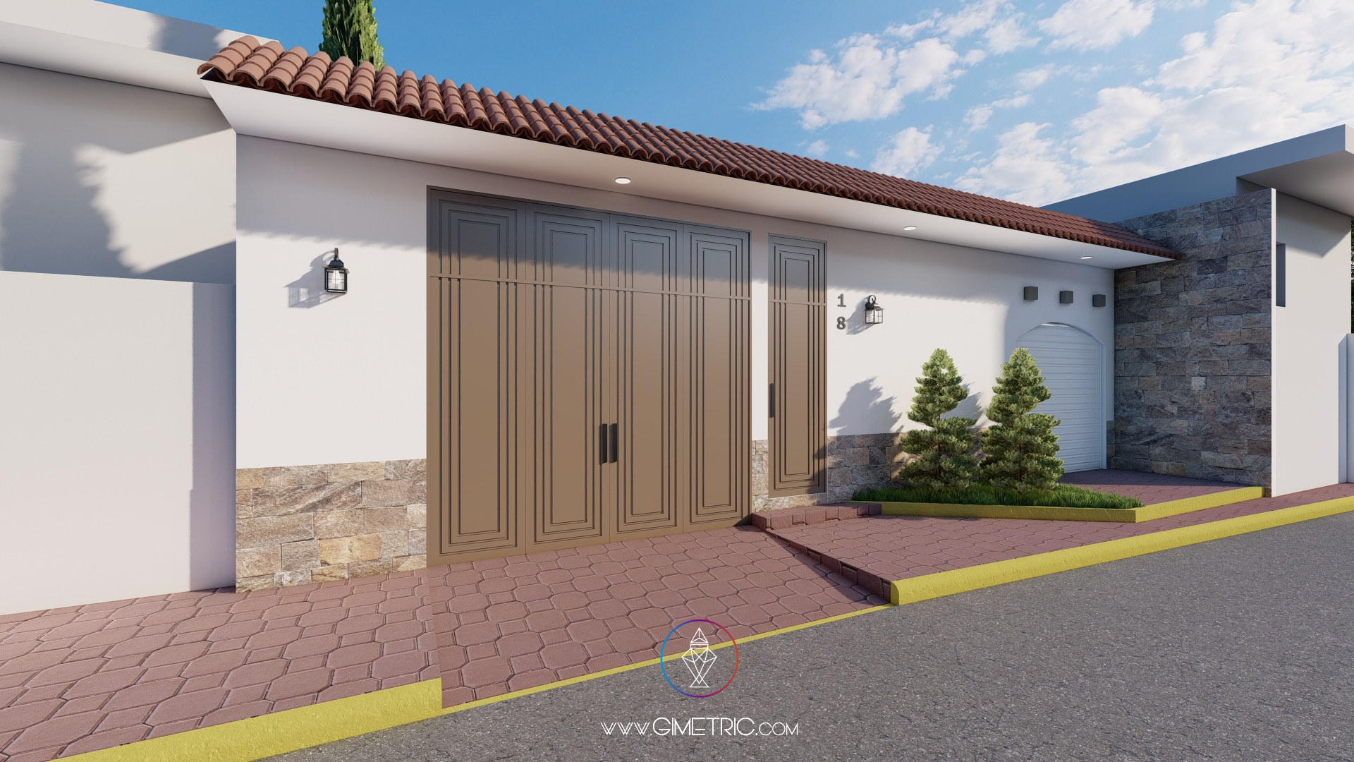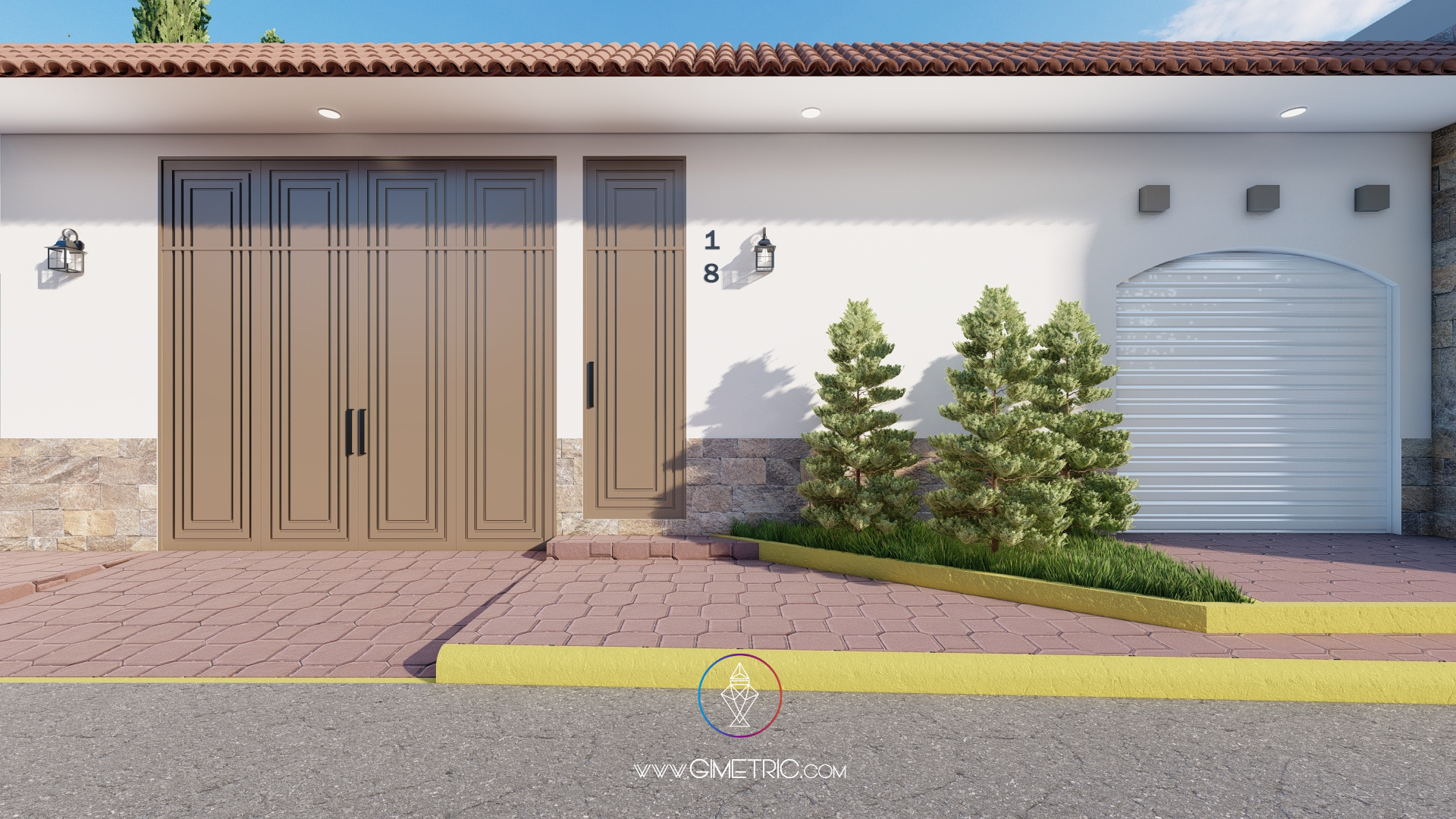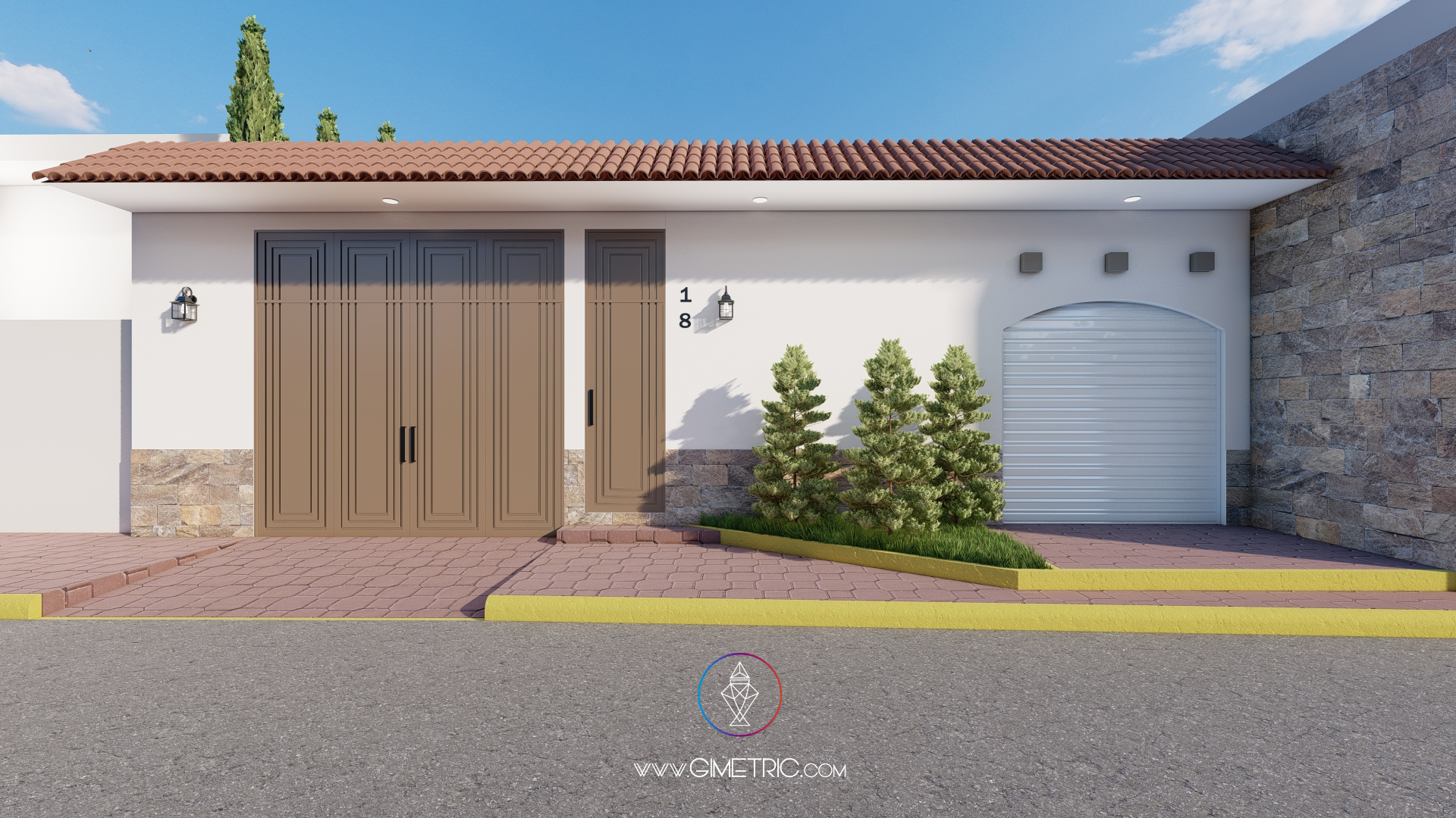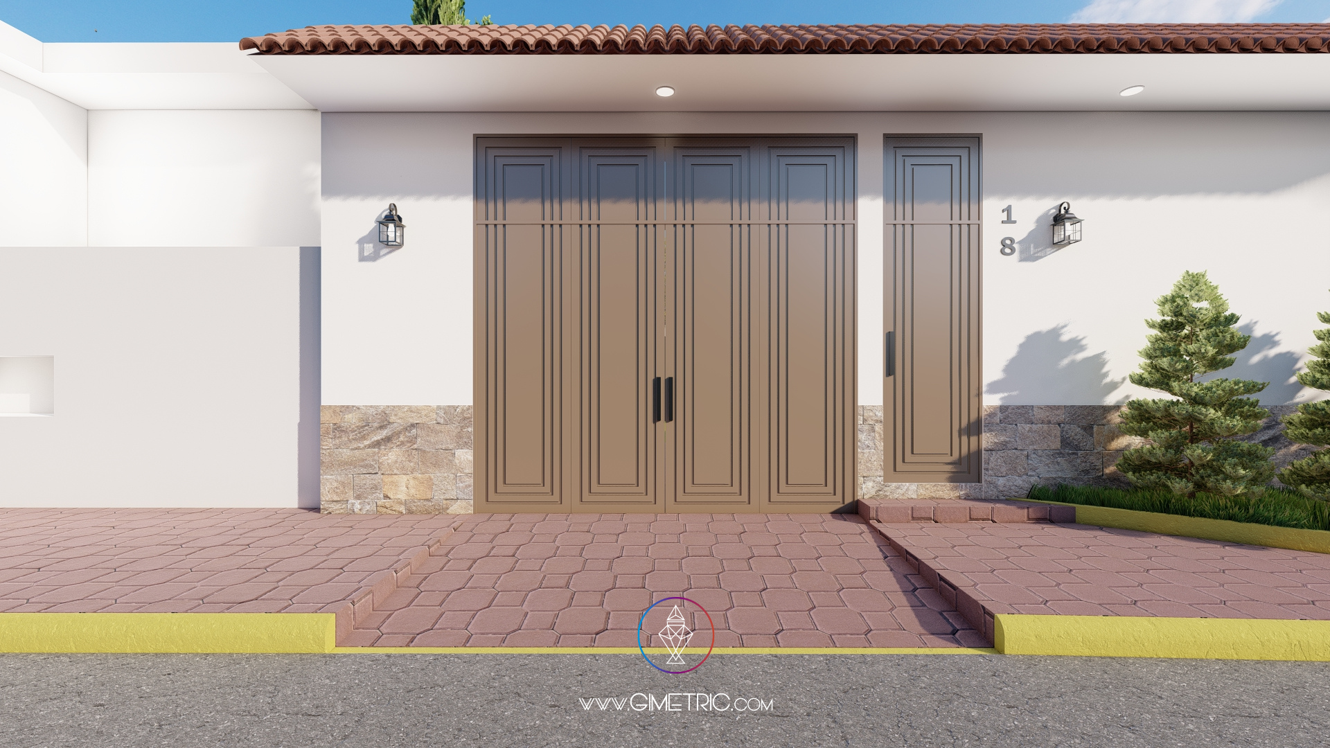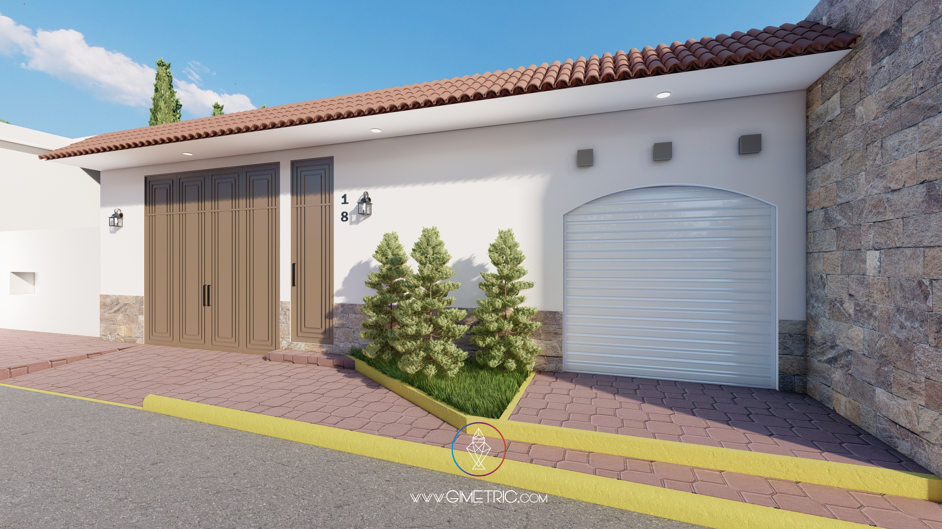 Diseñamos la fachada de este proyecto inspirándonos en un estilo colonial y contemporáneo, buscando crear una fachada elegante, limpia y con amplitud visual, utilizamos una paleta de colores neutros y cálidos para crear limpieza y amplitud visual en el espacio combinado con detalles pétreos y con metales para agregar calidez y sobriedad al espacio.