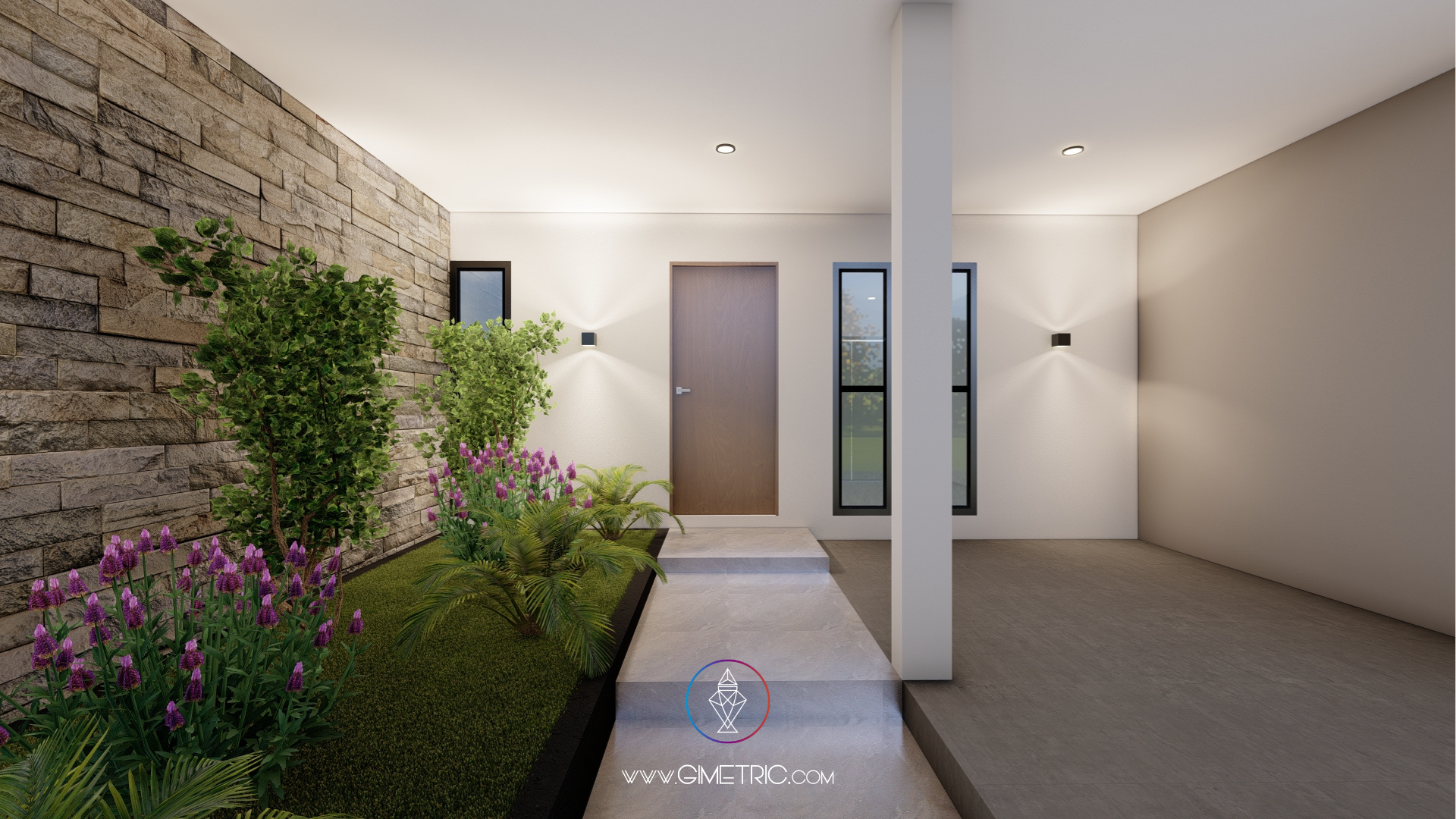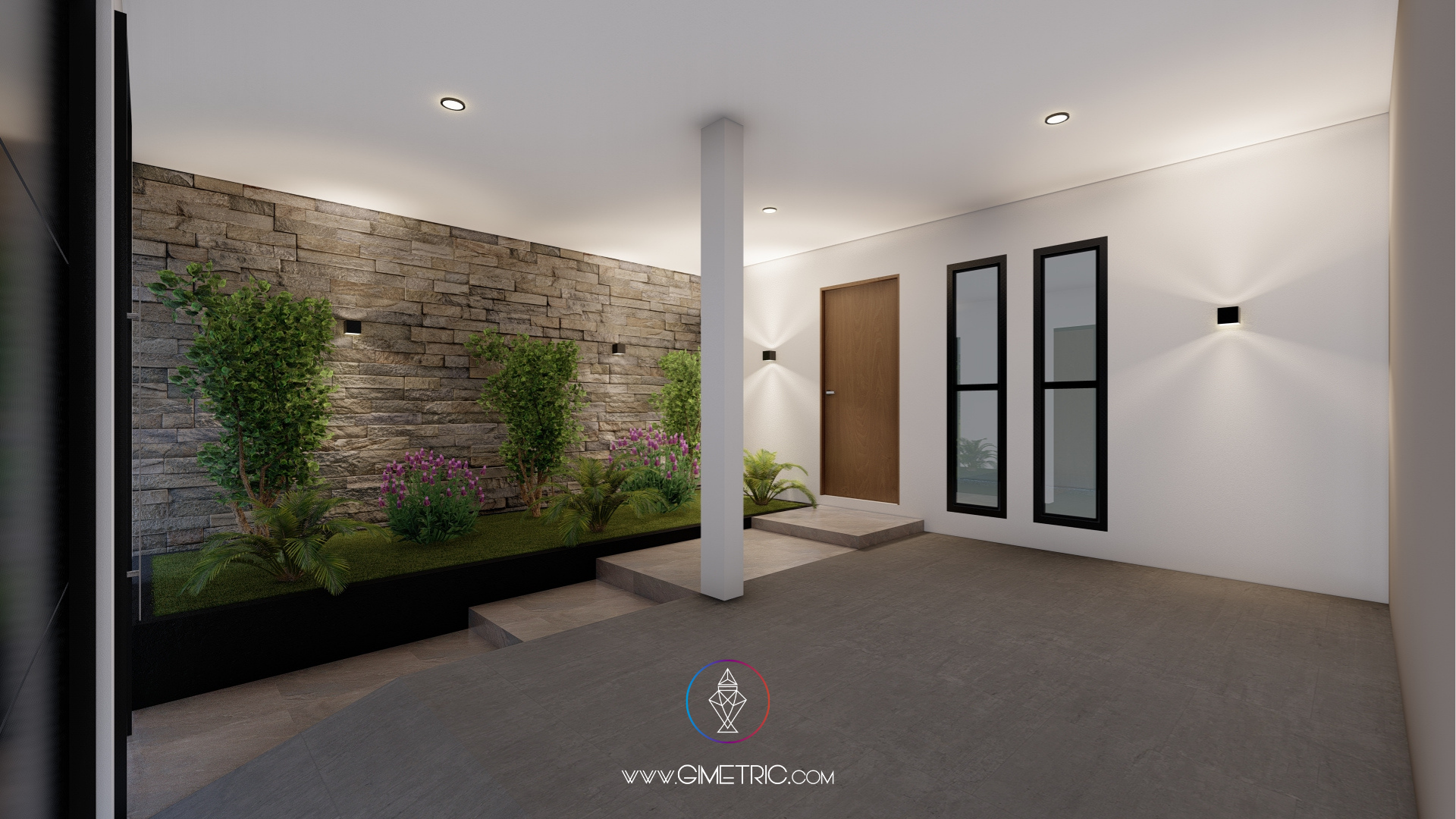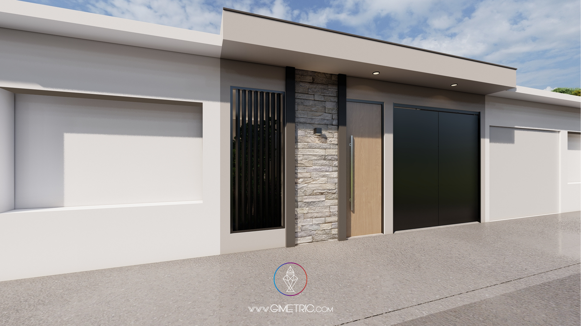 En esta propuesta nos enfocamos en diseñar una composición armónica que transmita solidez y sofisticación. Utilizamos una paleta de tonos neutros, piedra aparente y acentos de madera cálida para generar un juego de texturas que aportan profundidad, equilibrio visual y calidez. La volumetría limpia, junto con los planos sólidos y los contrastes de color, refuerzan el carácter contemporáneo de la vivienda.