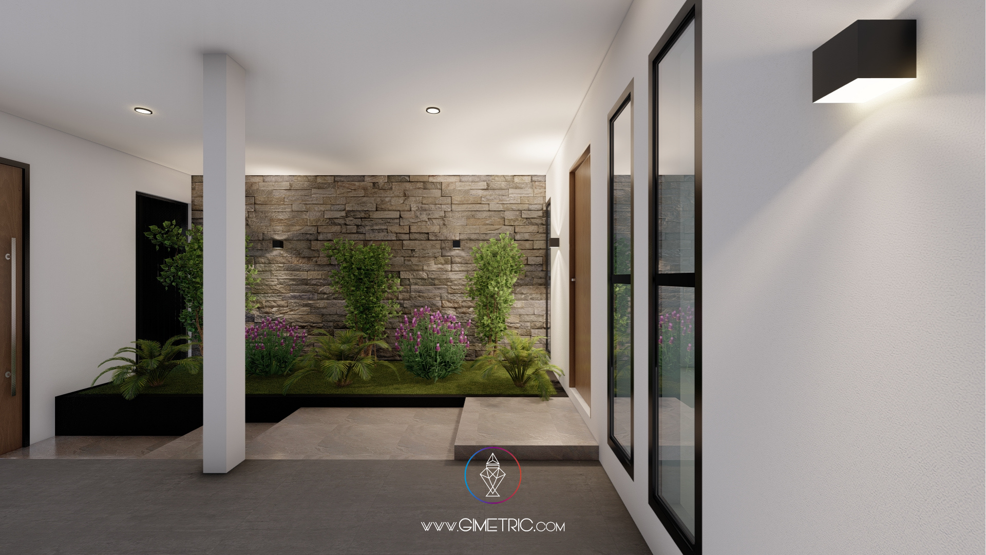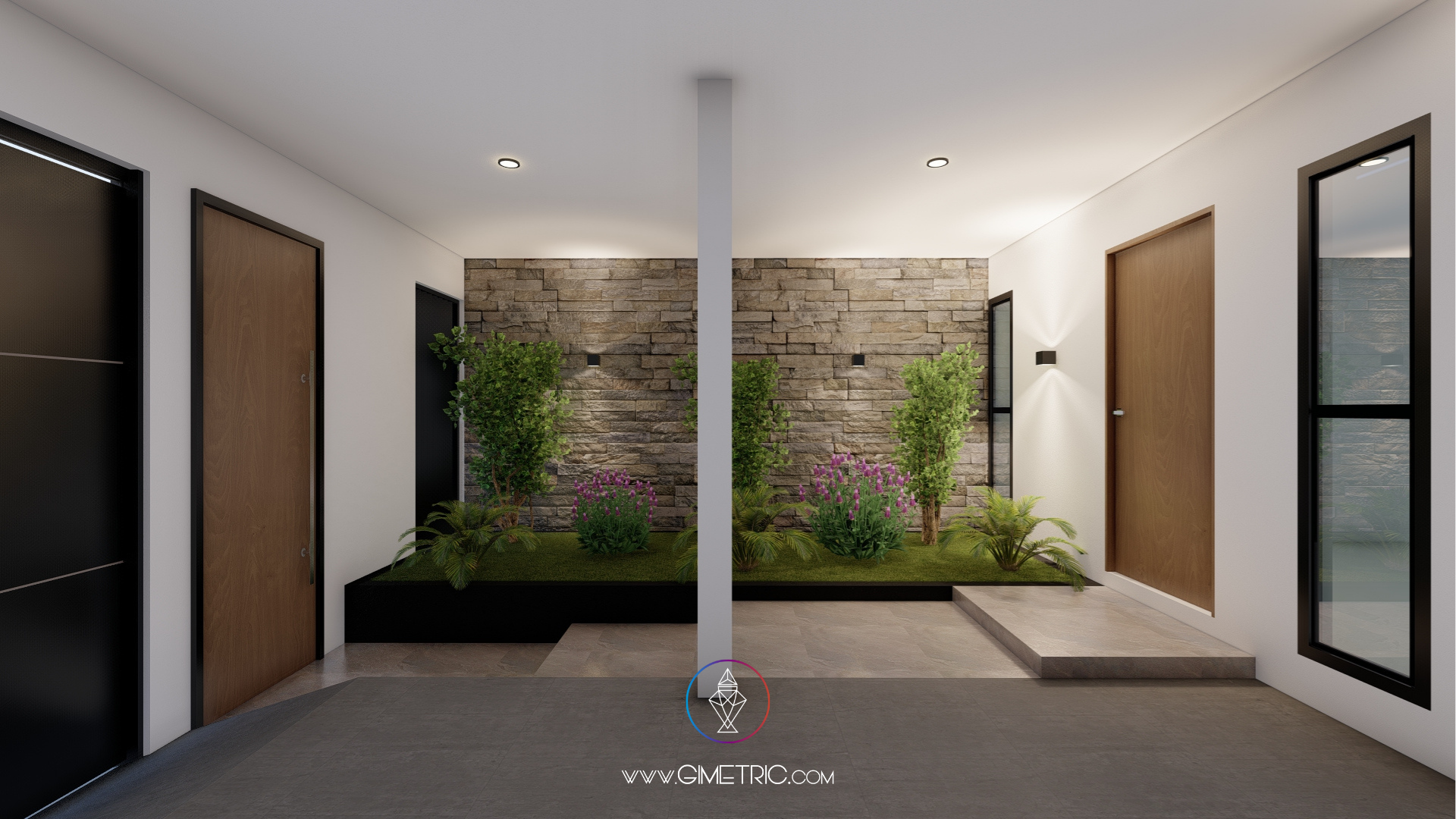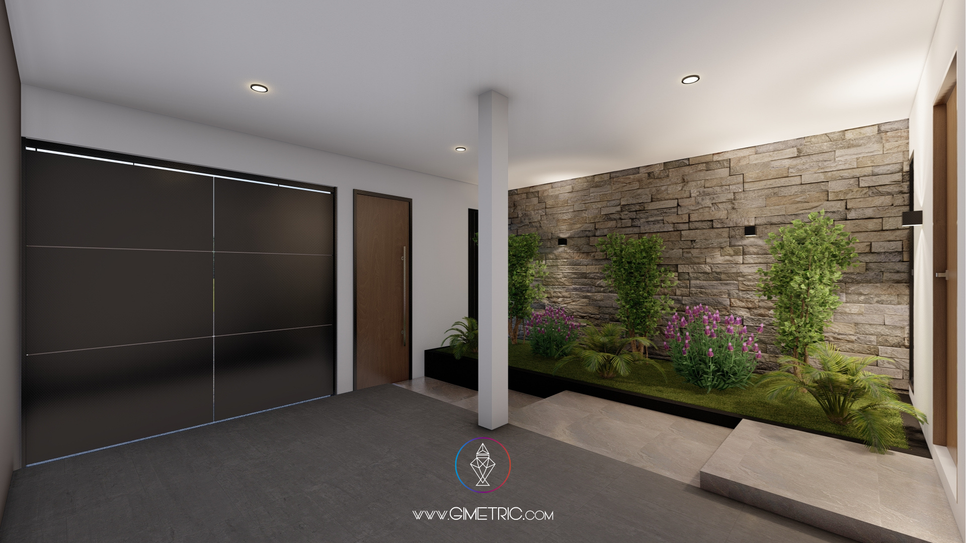 En esta propuesta nos enfocamos en diseñar una composición armónica que transmita solidez y sofisticación. Utilizamos una paleta de tonos neutros, piedra aparente y acentos de madera cálida para generar un juego de texturas que aportan profundidad, equilibrio visual y calidez. La volumetría limpia, junto con los planos sólidos y los contrastes de color, refuerzan el carácter contemporáneo de la vivienda.